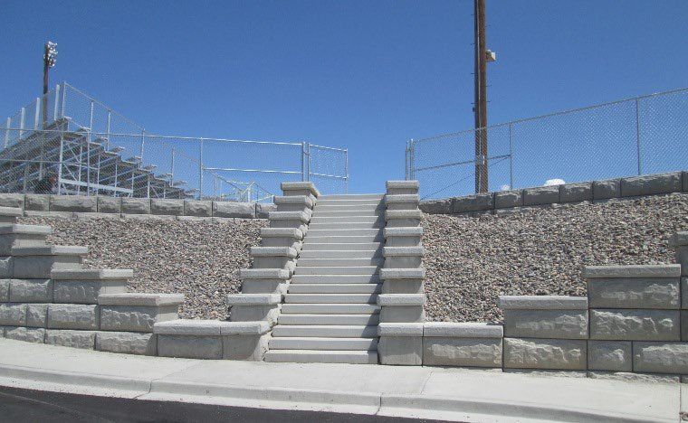 The Olathe High School property has been plagued by drainage issues between the school buildings and the football field. A retaining wall system and storm drainage network was designed to solve the drainage issues and beautify the grounds behind the school, creating an enjoyable space for students, faculty, and visitors.